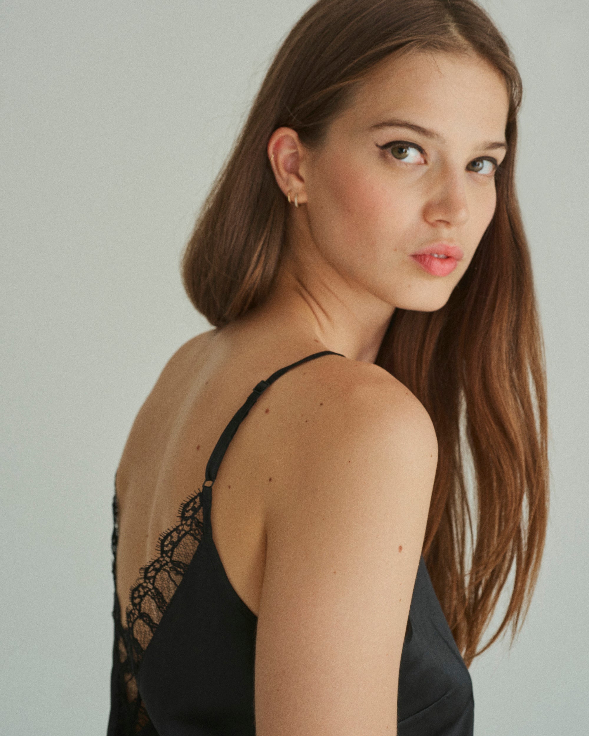 Top en soie au décolleté plongeant pour sublimer le dos et le décolleté. Sous ses allures de nuisette, ce top joue sur l’ambivalence d’un vêtement et d’un sous-vêtement. Pour un look de jour comme de nuit, décontracté chic sous un pull oversize.